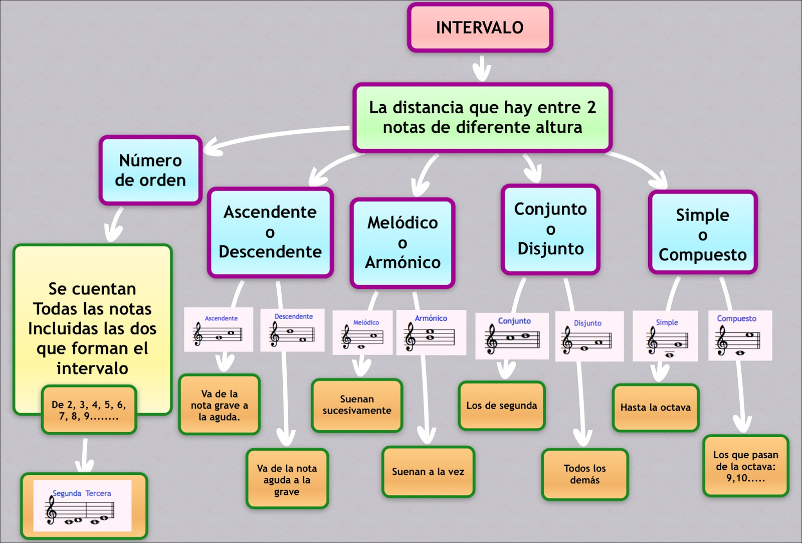 Los intervalos compuestos son aquellos que superan la octava. Estos intervalos se forman al agregar una o más octavas a un intervalo simple. Por ejemplo, una novena es un intervalo compuesto que consiste en una segunda más una octava.